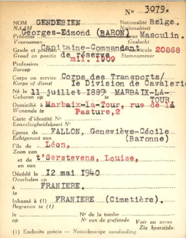 Informations complémentaires : Tué le 2e jour de guerre le 12 mai lors de la Campagne des 18 jours. Il fût parmi les 6300 militaires belges à perdre la vie entre le 10 et le 28 mai 1940.